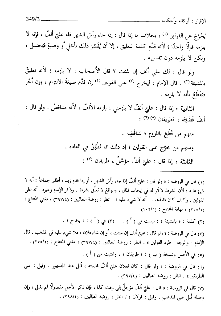 الثَّالِثَة إِذا قَالَ عَليّ ألف مُؤَجل طَرِيقَانِ