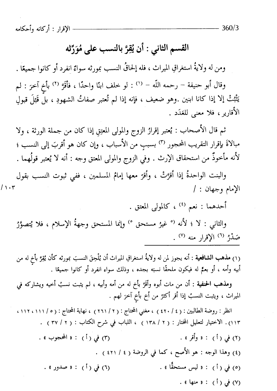 الْقسم الثَّانِي أَن يقر بِالنّسَبِ على مُوَرِثه