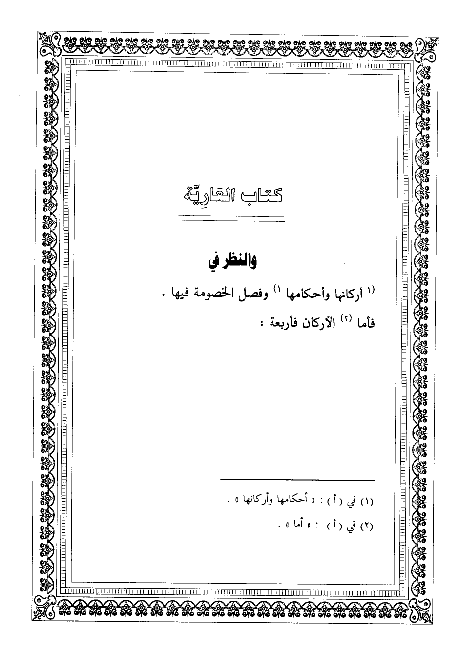 أَرْكَانهَا وأحكامها وَفصل الْخُصُومَة فِيهَا فإمَّا الْأَركان فَأَرْبَعَة