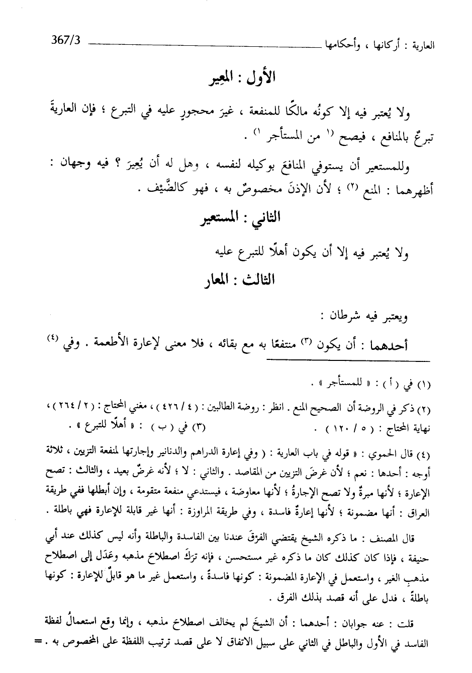 أَحدهمَا أَن يكون مُنْتَفعا بِهِ مَعَ بَقَائِهِ فَلَا معنى لإعاره الْأَطْعِمَة وَفِي