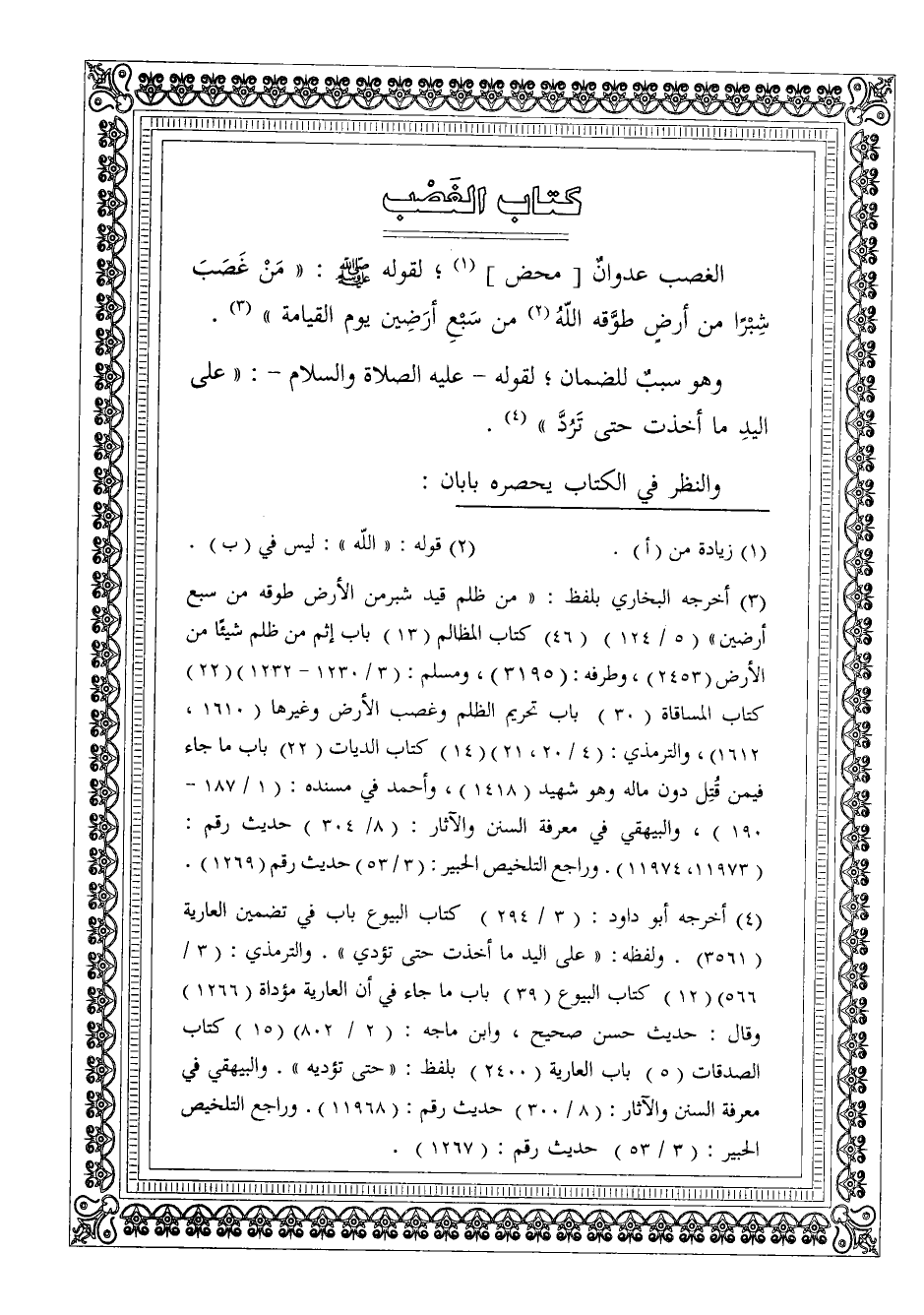 الْغَصْب عدوان مَحْض لقَوْله صلى الله عَلَيْهِ وَسلم من غضي شبْرًا من أَرض طوقه الله من سبع أَرضين يَوْم الْقِيَامَة