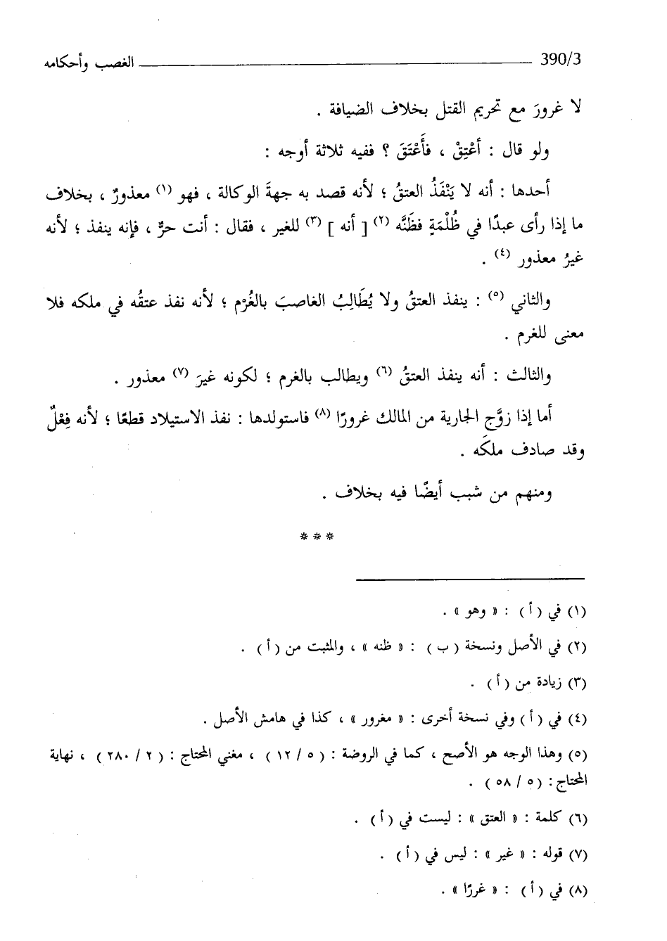 وَالثَّالِث أَنه ينفذ الْعتْق وَيُطَالب بالغرم لكَونه غير مَعْذُور