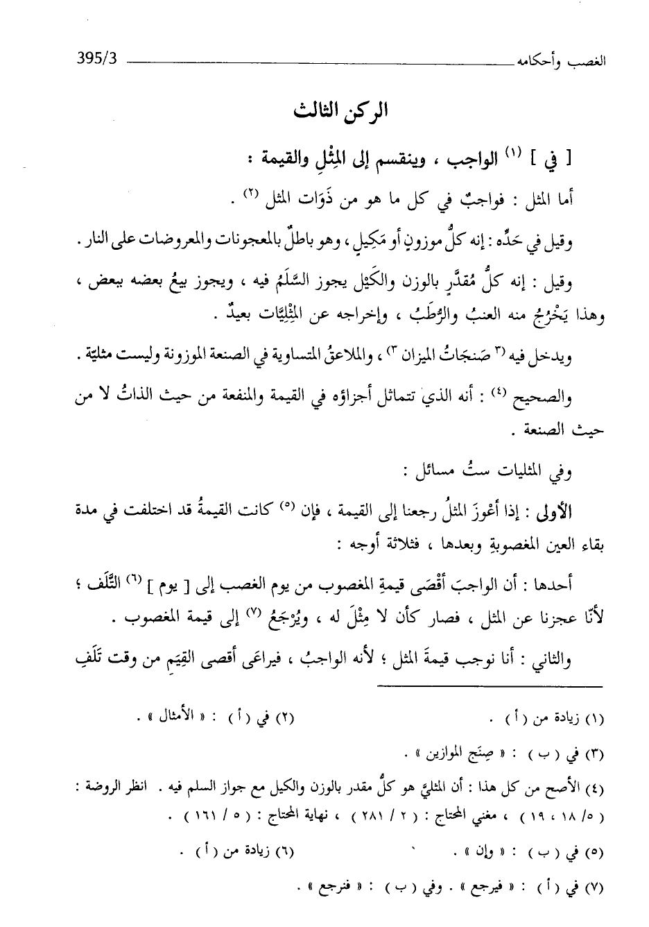 الرُّكْن الثَّالِث فِي الْوَاجِب وينقسم إِلَى الْمثل وَالْقيمَة