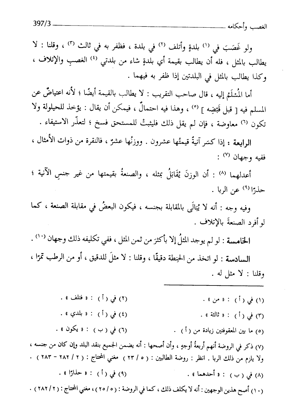 السَّادِسَة لَو اتخذ من الْحِنْطَة دَقِيقًا وَقُلْنَا لَا مثل للدقيق أَو من الرطب تَمرا وَقُلْنَا لَا مثل لَهُ