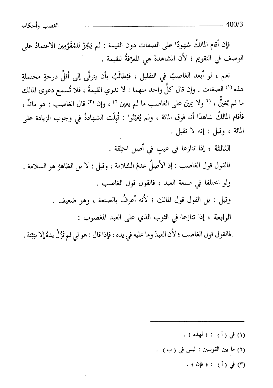 نعم لَو أبعد الْغَاصِب فِي التقليل فَيُطَالب بِأَن يترقى إِلَى أقل دَرَجَة مُحْتَملَة هَذِه الصِّفَات وَإِن قَالَ كل وَاحِد مِنْهُمَا لَا نَدْرِي الْقيمَة فَلَا تسمع دَعْوَى الْمَالِك مَا لم يعين وَلَا يَمِين على الْغَاصِب مَا لم يكين وَإِن قَالَ الْغَاصِب هُوَ مائَة فَأَقَامَ الْمَالِك شَاهدا أَنه فَوق الْمِائَة وَلم يعينوا قبلت الشَّهَادَة فِي وجوب الزِّيَادَة على الْمِائَة وَقيل أَنه لَا تقبل