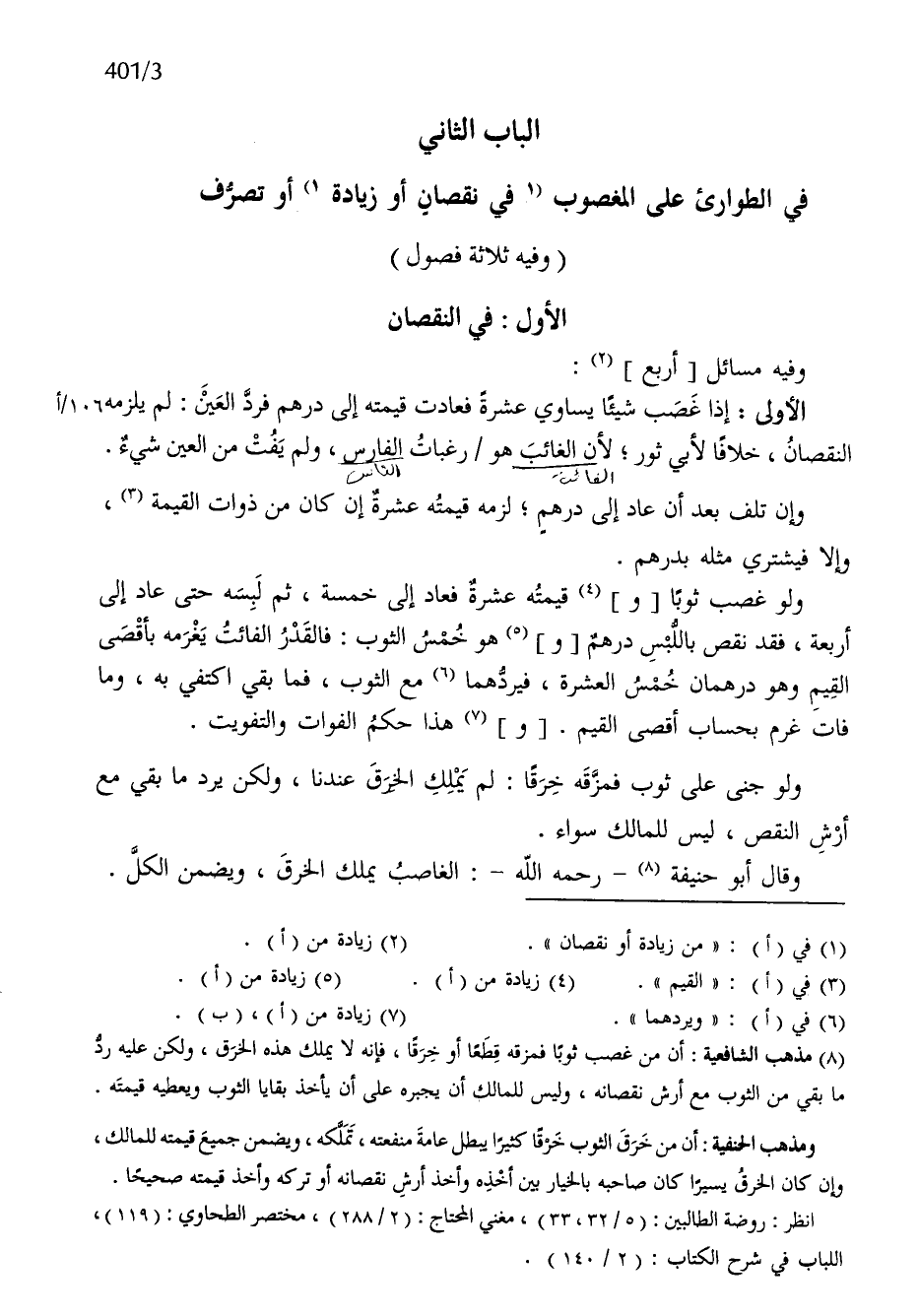 - صَلَّى اللَّهُ عَلَيْهِ وَسَلَّم َ - الْبَاب الثَّانِي فِي الطوارئ على الْمَغْصُوب فِي نُقْصَان أَو زِيَادَة أَو تصرف - صَلَّى اللَّهُ عَلَيْهِ وَسَلَّم َ - وَفِيه ثَلَاث فُصُول