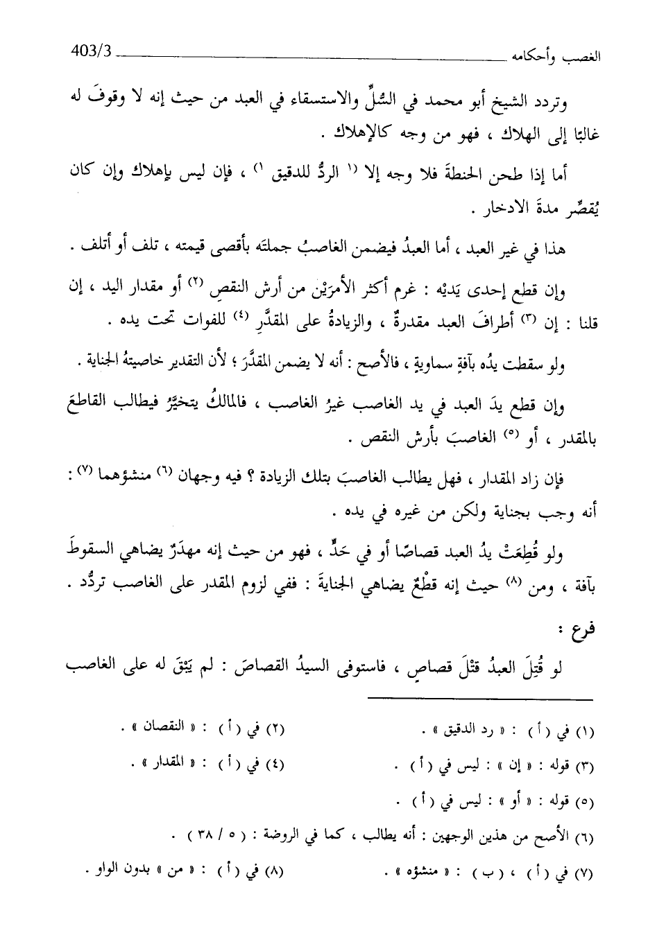 هَذَا فِي غير العَبْد أما العَبْد فَيضمن الْغَاصِب جملَته بأقصى قِيمَته تلف أَو أتلف