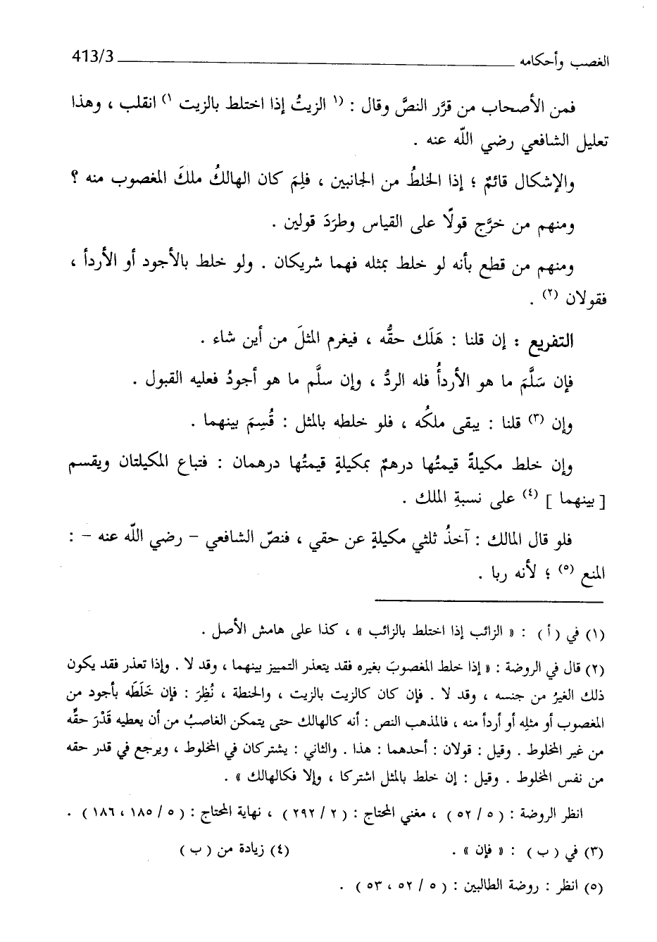 والإشكال قَائِم إِذا الْخَلْط من الْجَانِبَيْنِ فَلم كَانَ الْهَالِك ملك الْمَغْصُوب مِنْهُ وَمِنْهُم من خرج قولا على الْقيَاس وطرد قَوْلَيْنِ وَمِنْهُم من قطع بِأَنَّهُ لَو خلط بِمثلِهِ فهما شريكان وَلَو خلط بالأجود أَو الأردأ فَقَوْلَانِ