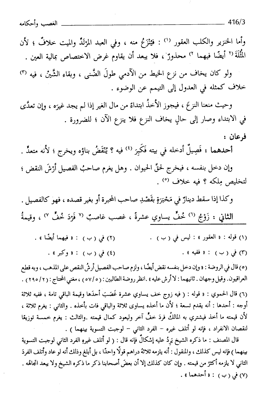 الثَّانِي زوج خف يُسَاوِي عشرَة غَاصِب فَرد خف وَقِيمَة