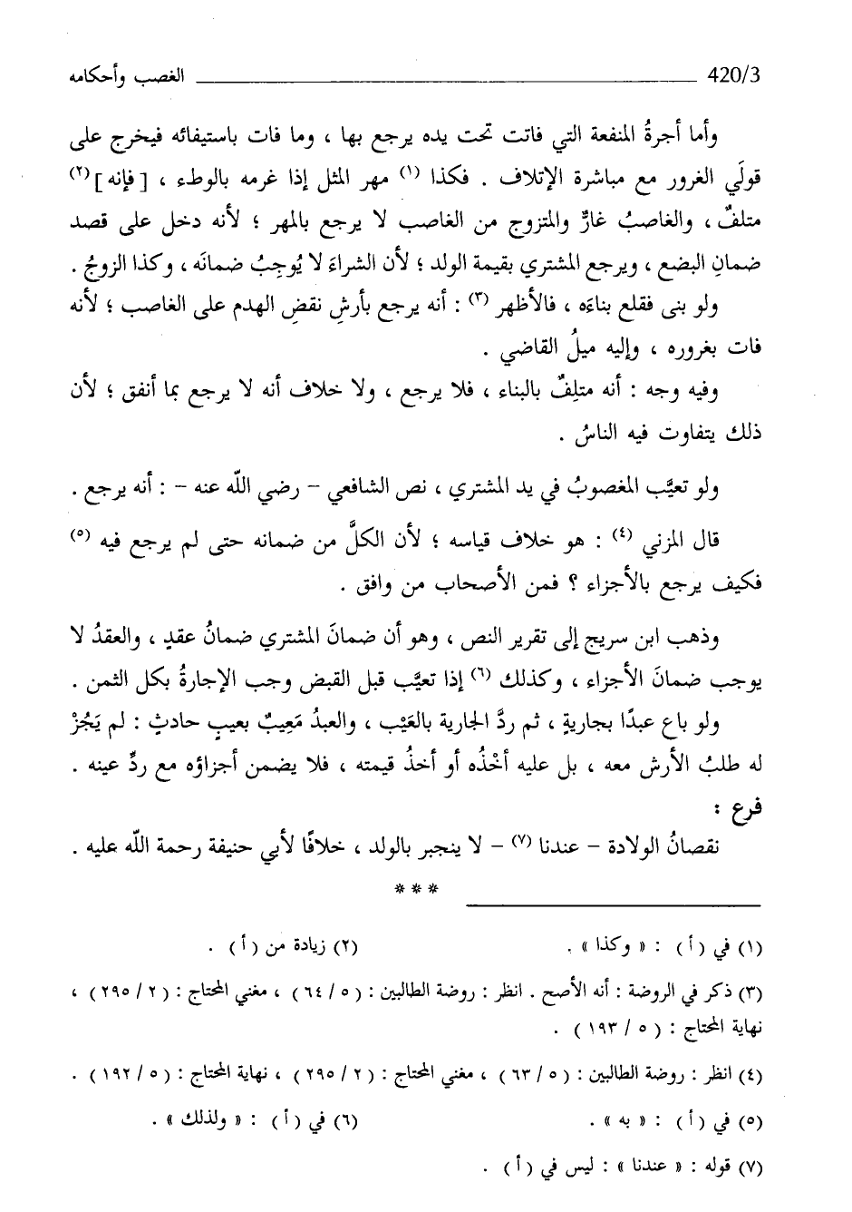 وَذهب ابْن سُرَيج إِلَى تَقْرِير النَّص وَهُوَ أَن ضَمَان المُشْتَرِي ضَمَان عقد والبعقد لَا يُوجب ضَمَان الْأَجْزَاء وَكَذَلِكَ إِذا تعيب قبل الْقَبْض وَجب الْإِجَازَة بِكُل الثّمن
