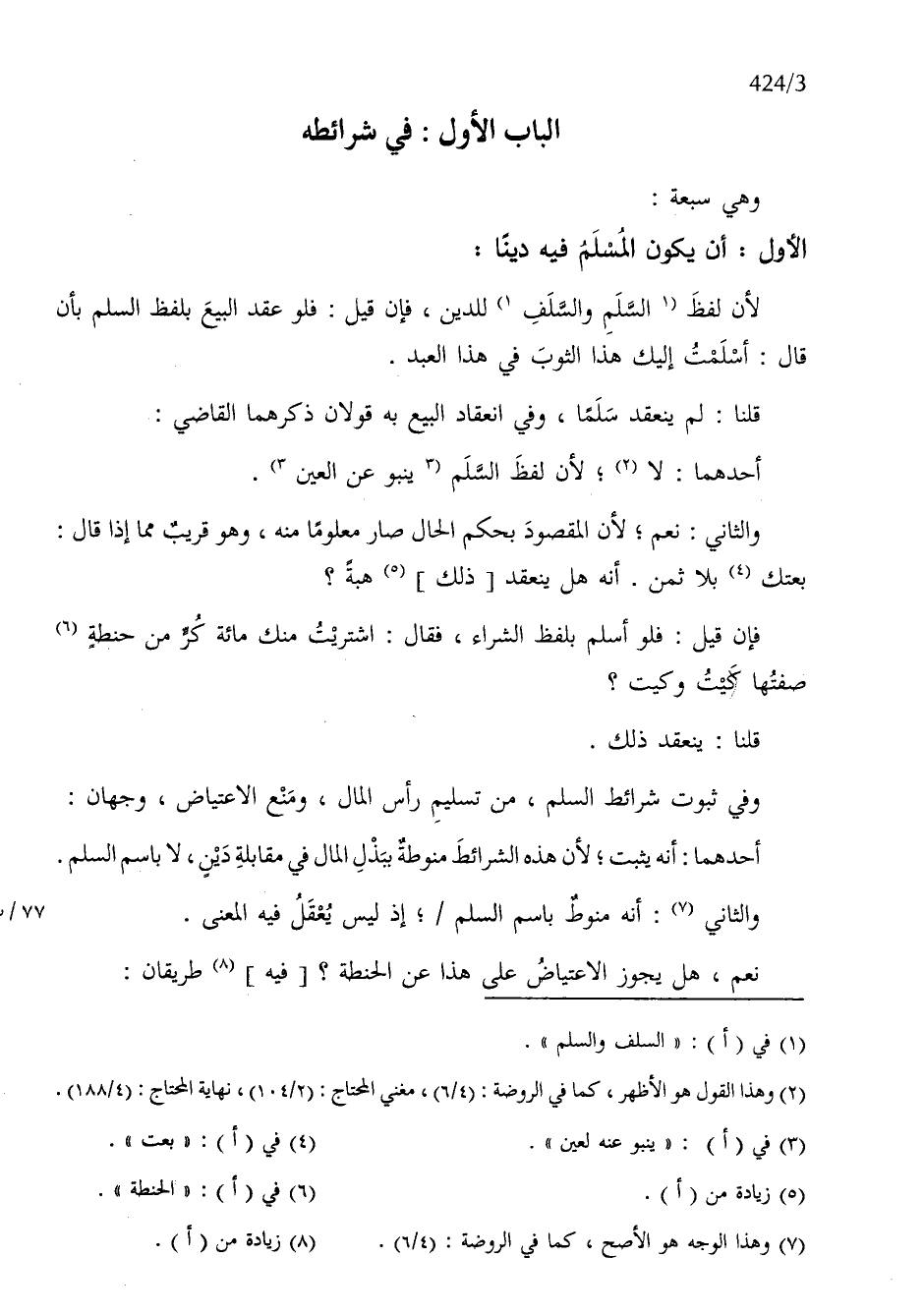 - صَلَّى اللَّهُ عَلَيْهِ وَسَلَّم َ - الْبَاب الأول فِي شَرَائِطه وَهِي سَبْعَة - صَلَّى اللَّهُ عَلَيْهِ وَسَلَّم َ -