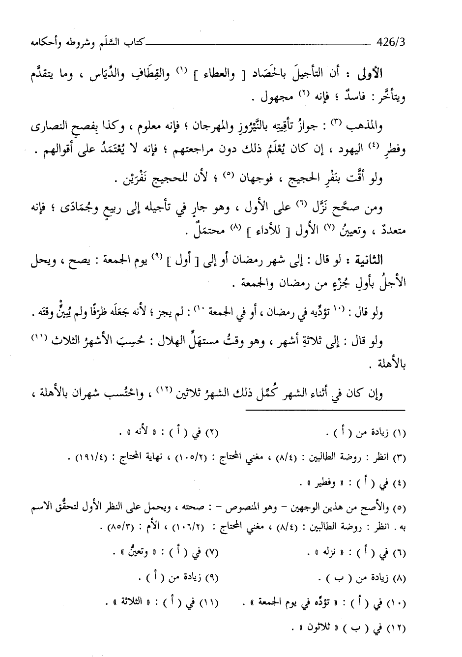 الأولى أَن التَّأْجِيل بالحصاد وَالعطَاء والقطاف والدياس وَمَا يتَقَدَّم ويتأخر فَاسد فَأَنَّهُ مَجْهُول