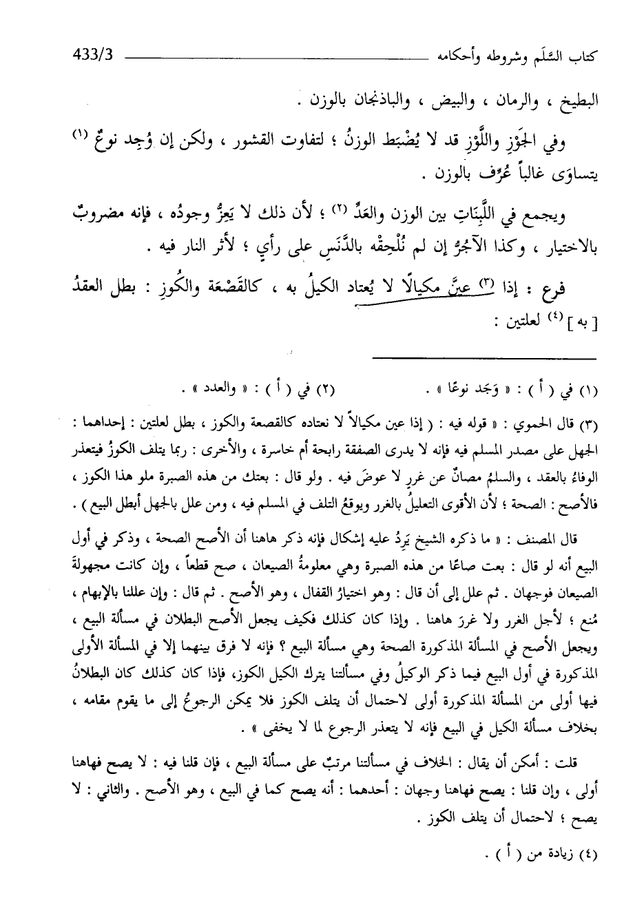 وَفِي الْجَوْز وللوز قد لَا يضْبط الْوَزْن لتَفَاوت القشور وَلَكِن إِن وجد نوع يتساوى غَالِبا عرف بِالْوَزْنِ