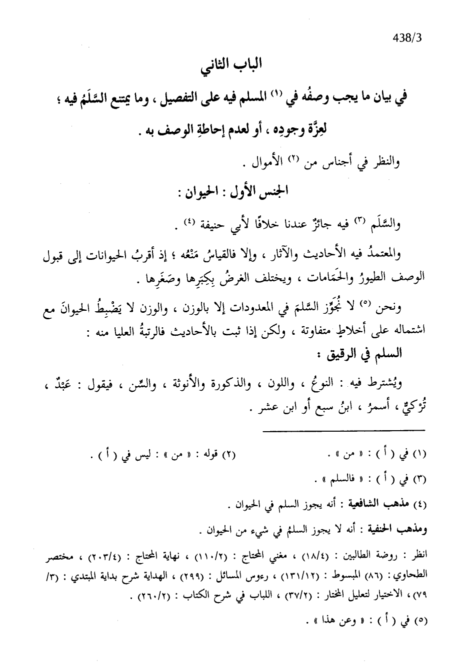 - صَلَّى اللَّهُ عَلَيْهِ وَسَلَّم َ - الْبَاب الثَّانِي فِي بَيَان مَا يجب وَصفه فِي الْمُسلم فِيهِ على التَّفْصِيل وَمَا يمْتَنع السّلم فِيهِ