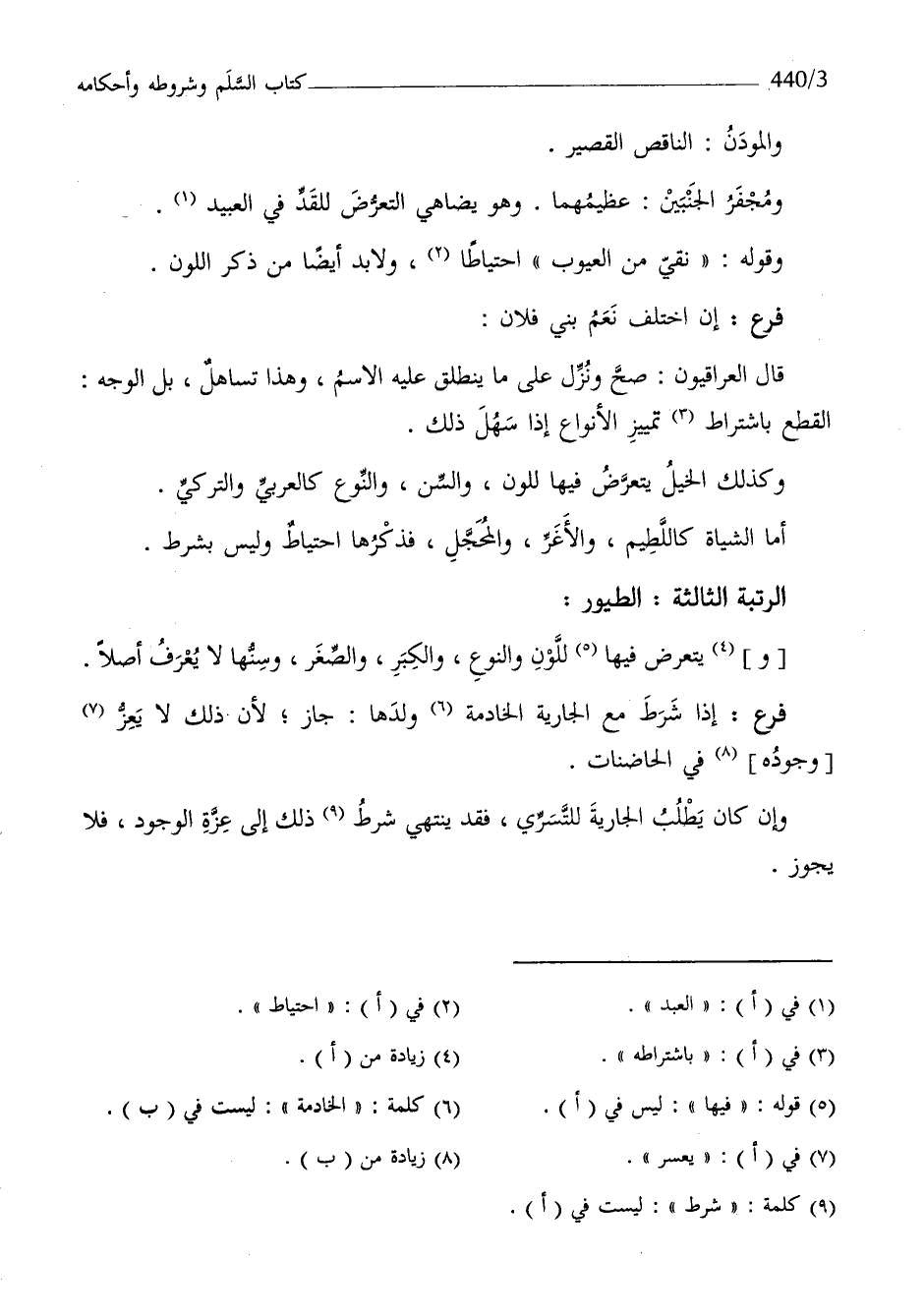 أما الشياة كاللطيم والأغر والمحجل فَذكرهَا احْتِيَاط وَلَيْسَ بِشَرْط الرُّتْبَة الثَّالِثَة الطُّيُور