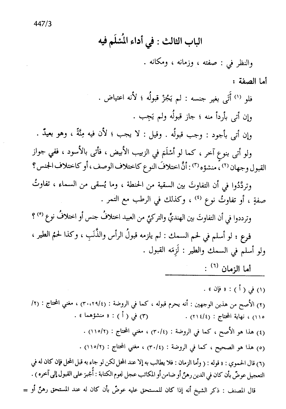- صَلَّى اللَّهُ عَلَيْهِ وَسَلَّم َ - الْبَاب الثَّالِث فِي أَدَاء الْمُسلم فِيهِ - صَلَّى اللَّهُ عَلَيْهِ وَسَلَّم َ - وَالنَّظَر فِي صفته وزمانه ومكانه