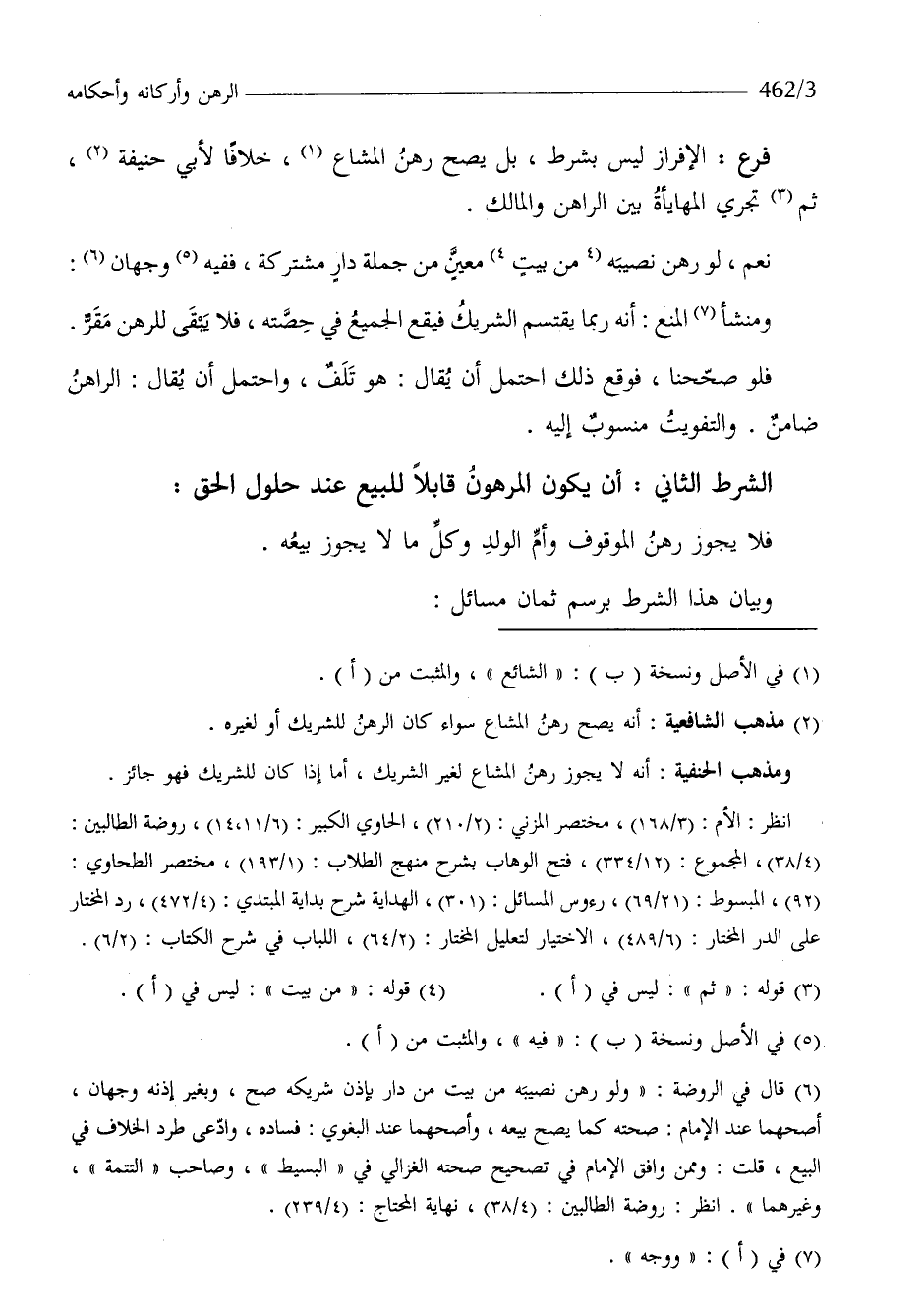 وَبَيَان هَذَا الشَّرْط برسم ثَمَان مسَائِل