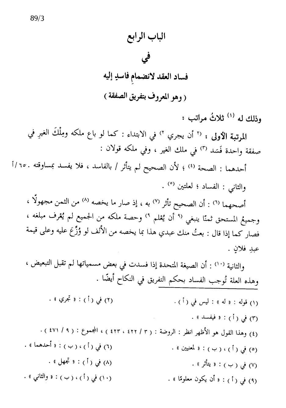 - صَلَّى اللَّهُ عَلَيْهِ وَسَلَّم َ - الْبَاب الرَّابِع فِي فَسَاد العقد لانضمام فَاسد إِلَيْهِ وَهُوَ الْمَعْرُوف بتفريق الصَّفْقَة وَذَلِكَ لَهُ ثَلَاث مَرَاتِب - صَلَّى اللَّهُ عَلَيْهِ وَسَلَّم َ -
