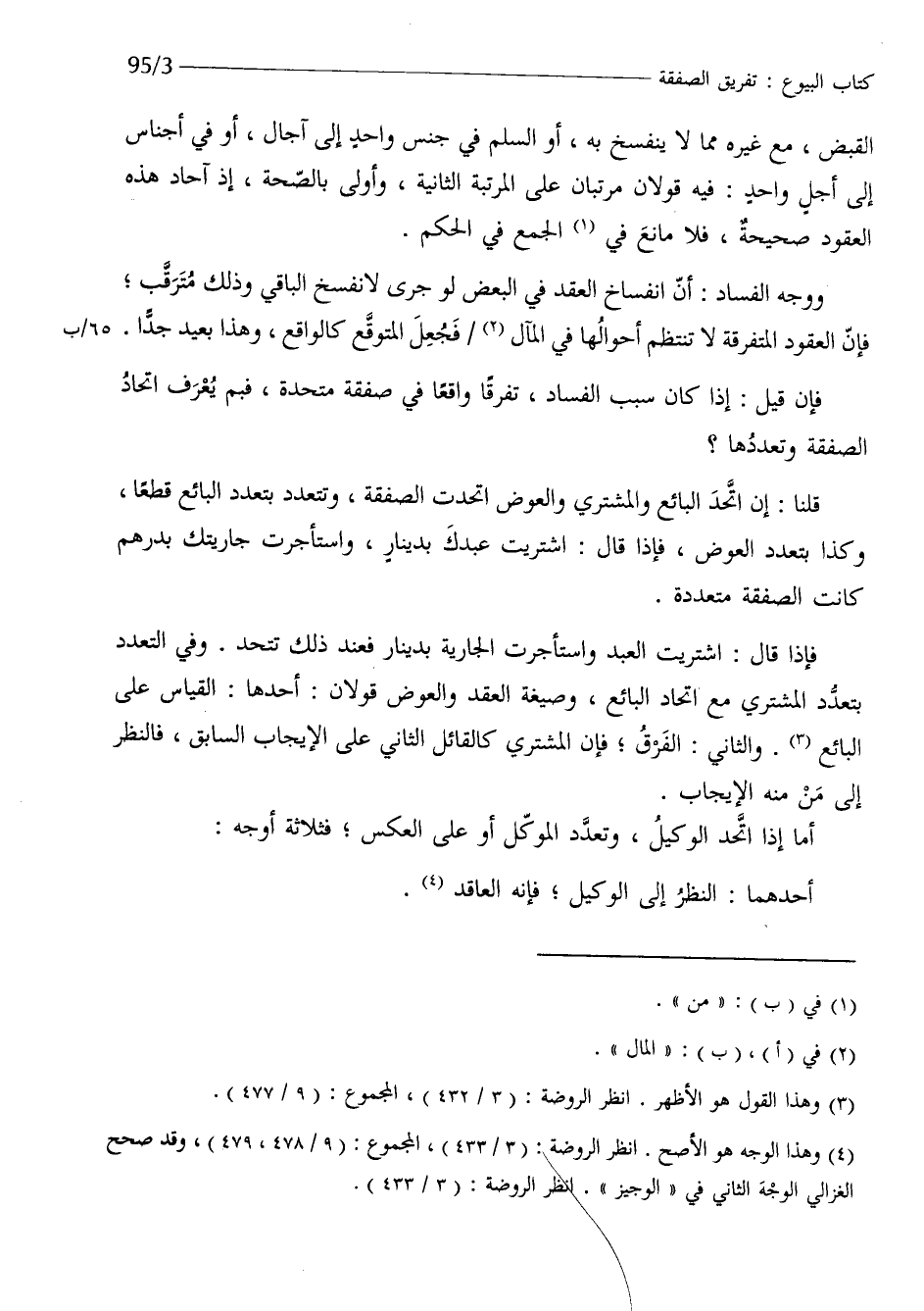 فَإِذا قَالَ اشْتريت العَبْد واستأجرت الْجَارِيَة بِدِينَار فَعِنْدَ ذَلِك تتحد وَفِي التَّعَدُّد بِتَعَدُّد المُشْتَرِي مَعَ اتِّحَاد البَائِع وَصِيغَة العقد والعوض قَولَانِ أَحدهمَا الْقيَاس على البَائِع وَالثَّانِي الْفرق فان المُشْتَرِي كالقائل الثَّانِي على الْإِيجَاب السَّابِق فالنظر إِلَى من مِنْهُ الْإِيجَاب أما إِذا اتَّحد الْوَكِيل وتعدد الْمُوكل أَو على الْعَكْس فَثَلَاثَة أوجه