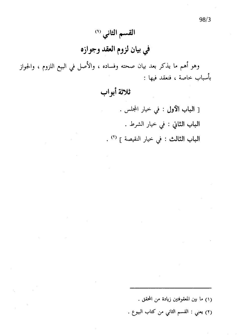 الْقسم الثَّانِي فِي بَيَان لُزُوم العقد وجوازه