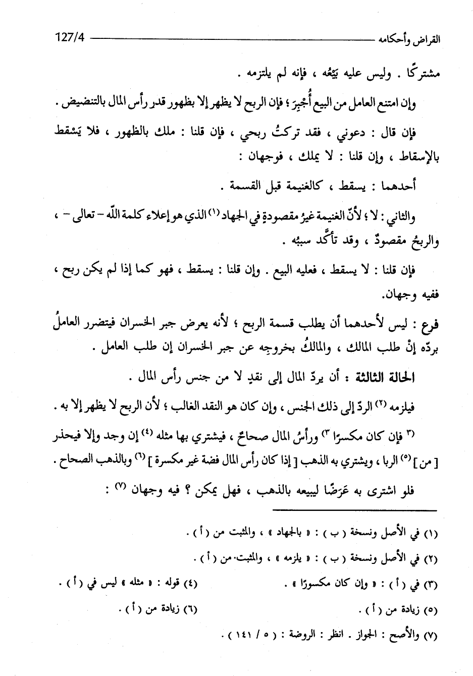 الْحَالة الثَّالِثَة أَن يرد المَال إِلَى نقد لَا من جنس رَأس المَال