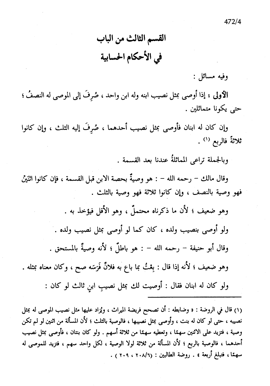 الْقسم الثَّالِث من الْبَاب فِي الْأَحْكَام الحسابية
