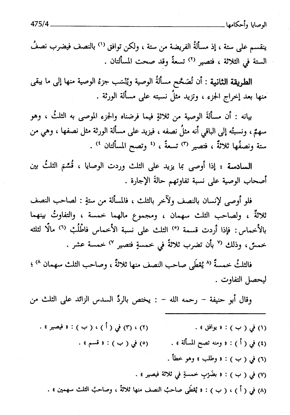 الطَّرِيقَة الثَّانِيَة أَن تصحح مَسْأَلَة الْوَصِيَّة وينسب جُزْء الْوَصِيَّة مِنْهَا إِلَى مَا يبْقى مِنْهَا بعد إِخْرَاج الْجُزْء وتزيد مثل نسبته على مَسْأَلَة الْوَرَثَة