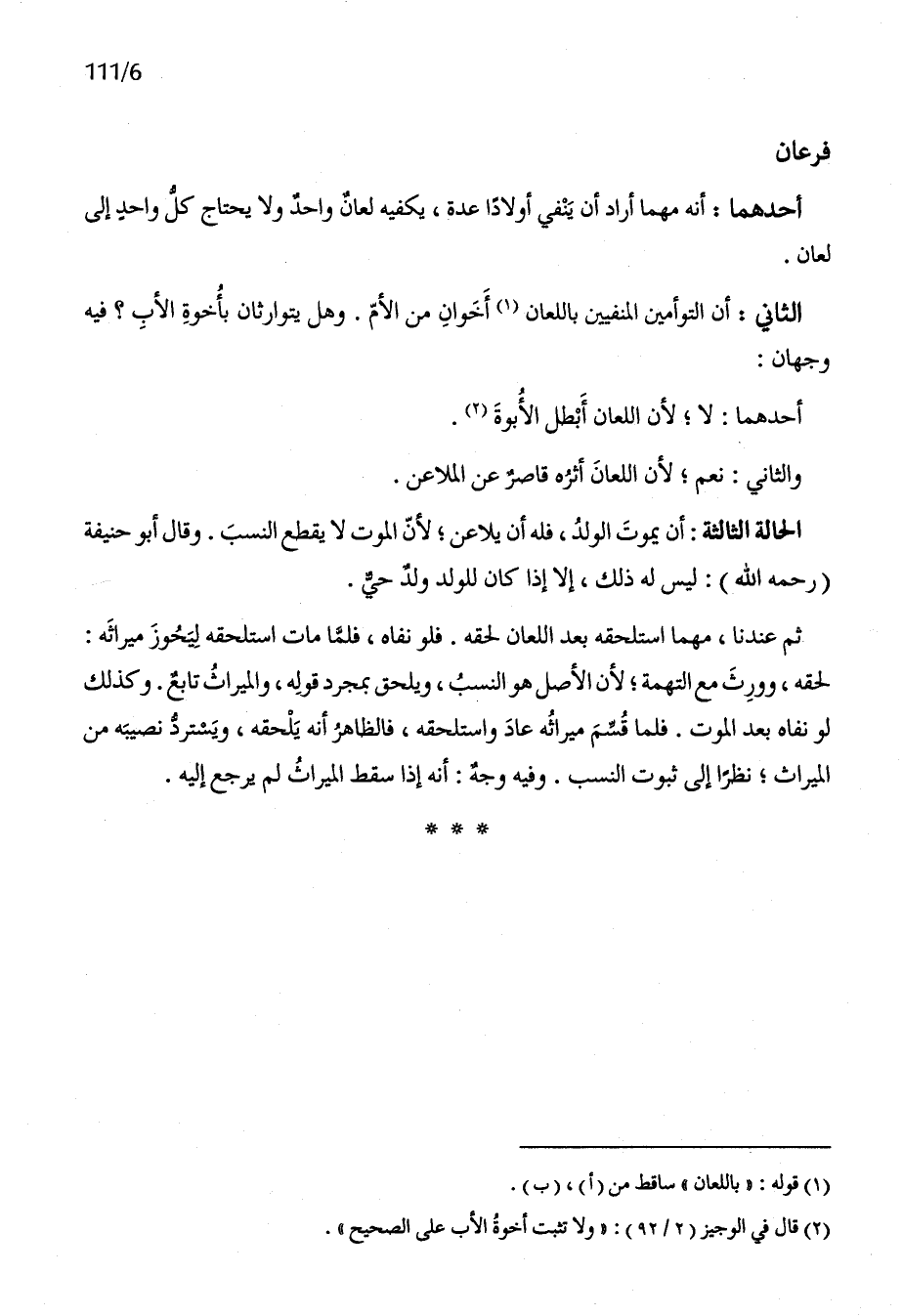 الثَّانِي أَن التوأمين المنفيين بِاللّعانِ أَخَوان من الْأُم وَهل يتوارثان بأخوة الْأَب فِيهِ وَجْهَان