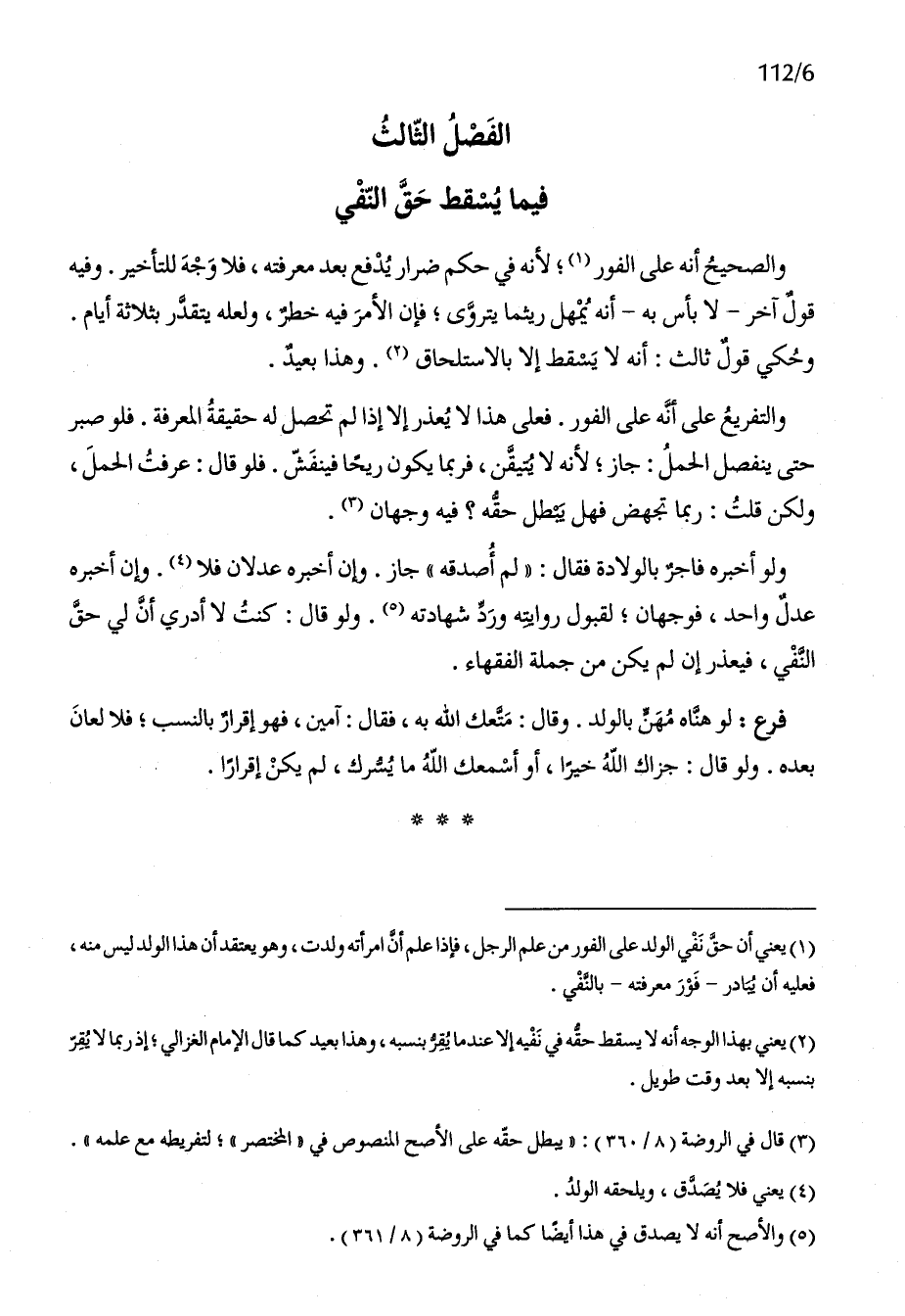 الْفَصْل الثَّالِث فِيمَا يسْقط حق النَّفْي