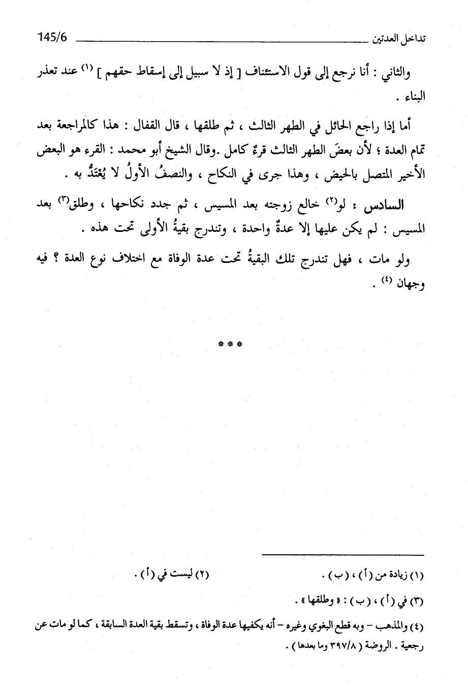 السَّادِس لَو خَالع زَوجته بعد الْمَسِيس ثمَّ جدد نِكَاحهَا وطلق بعد الْمَسِيس لم يكن عَلَيْهَا إِلَّا عدَّة وَاحِدَة وتندرج بَقِيَّة الأولى تَحت هَذِه