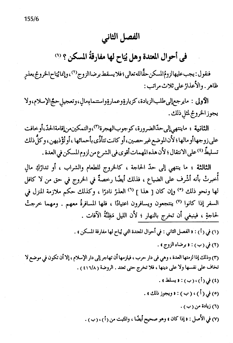 الْفَصْل الثَّانِي فِي أَحْوَال الْمُعْتَدَّة وَهل يُبَاح لَهَا مُفَارقَة الْمسكن