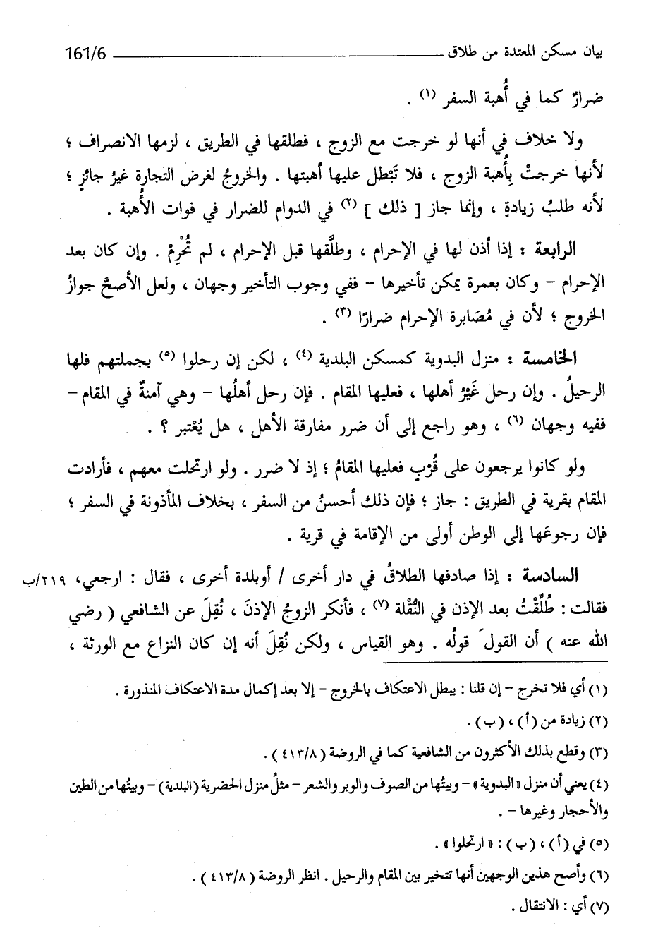 الْخَامِسَة منزل البدوية كمسكن البلدية لَكِن إِن رحلوا بجملتهم فلهَا الرحيل وَإِن رَحل غير أَهلهَا فعلَيْهَا الْمقَام فَإِن رَحل أَهلهَا وَهِي آمِنَة فِي الْمقَام فَفِيهِ وَجْهَان وَهُوَ رَاجع إِلَى أَن ضَرَر مُفَارقَة الْأَهْل هَل يعْتَبر