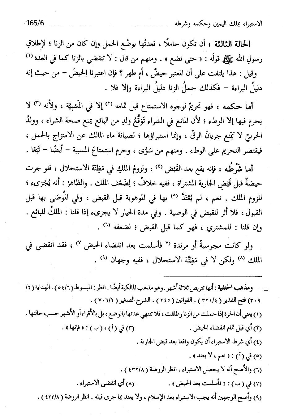أما حكمه فَهُوَ تَحْرِيم لوجوه الإستمتاع قبل تَمَامه إِلَّا فِي المسبية وَلِأَنَّهُ لَا يحرم فِيهَا إِلَّا الْوَطْء لِأَن الْمَانِع فِي الشِّرَاء توقع ولد من البَائِع يمْنَع صِحَة الشِّرَاء وَولد الْحَرْبِيّ لَا يمْنَع جَرَيَان الرّقّ وَإِنَّمَا استبراؤها لصيانة مَاء الْمَالِك عَن الإمتزاج بِالْحملِ فَيقْتَصر التَّحْرِيم على الْوَطْء وَمِنْهُم من سوى وَحرم استمتاع المسبية أَيْضا تبعا