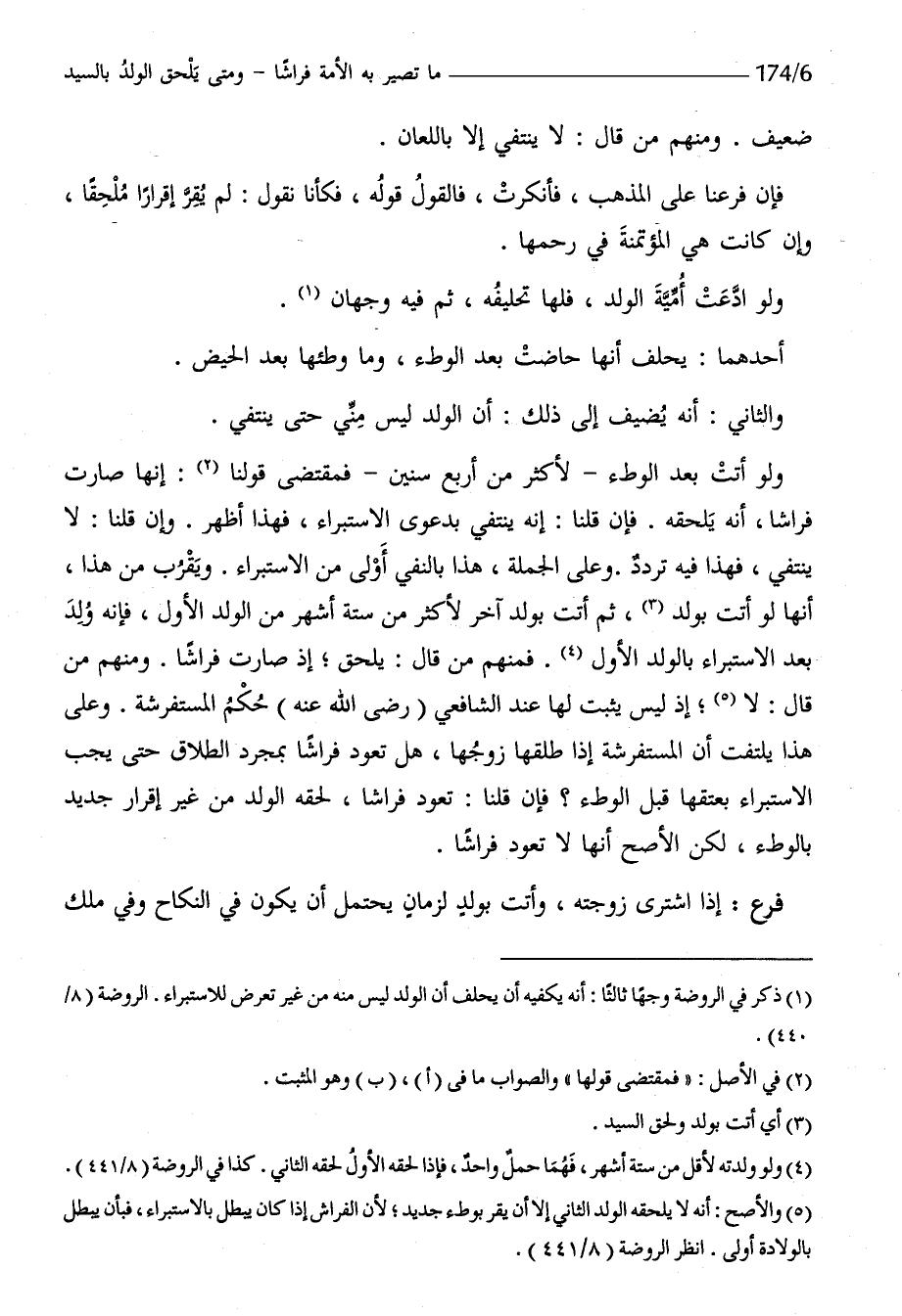 وَلَو أَتَت بعد الْوَطْء لأكْثر من أَربع سِنِين فَمُقْتَضى قَوْلنَا إِنَّهَا صَارَت فراشا أَنه يلْحقهُ فَإِن قُلْنَا إِنَّه يَنْتَفِي بِدَعْوَى الإستبراء فَهَذَا أظهر وَإِن قُلْنَا لَا يَنْتَفِي فَهَذَا فِيهِ تردد وعَلى الْجُمْلَة هَذَا بِالنَّفْيِ أولى من الإستبراء وَيقرب من هَذَا أَنَّهَا لَو أَتَت بِولد ثمَّ أَتَت بِولد آخر لأكْثر من سِتَّة أشهر من الْوَلَد الأول فَإِنَّهُ ولد بعد الإستبراء بِالْوَلَدِ الأول فَمنهمْ من قَالَ يلْحق إِذْ صَارَت فراشا وَمِنْهُم من قَالَ لَا إِذْ لَيْسَ يثبت لَهَا عِنْد الشَّافِعِي رَضِي الله عَنهُ حكم المستفرشة وعَلى هَذَا يلْتَفت أَن المستفرشة إِذا طَلقهَا زَوجهَا هَل تعود فراشا بِمُجَرَّد الطَّلَاق حَتَّى يجب الإستبراء بِعتْقِهَا قبل الْوَطْء فَإِن قُلْنَا تعود فراشا لحقه الْوَلَد من غير إِقْرَار جَدِيد بِالْوَطْءِ لَكِن الْأَصَح أَنَّهَا لَا تعود فراشا