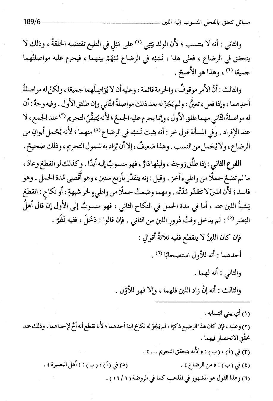 الْفَرْع الثَّانِي إِذا طلق زَوجته ولبنها دَار فَهُوَ مَنْسُوب إِلَيْهِ أبدا وَكَذَلِكَ لَو انْقَطع وَعَاد مَا لم تضع حملا من واطىء آخر وَقيل إِنَّه يتَقَدَّر بِأَرْبَع سِنِين وَهُوَ أقْصَى مُدَّة الْحمل وَهُوَ فَاسد لِأَن اللَّبن لَا تتقدر مدَّته وَمهما وضعت حملا من واطىء لخر شُبْهَة أَو نِكَاح انْقَطع نِسْبَة اللَّبن عَنهُ اما فِي مُدَّة الْحمل فِي النِّكَاح الثَّانِي فَهُوَ مَنْسُوب إِلَى الأول إِن قَالَ أهل الْبَصَر لم يدْخل وَقت درور اللَّبن من الثَّانِي فَإِن قَالُوا دخل فَفِيهِ نظر