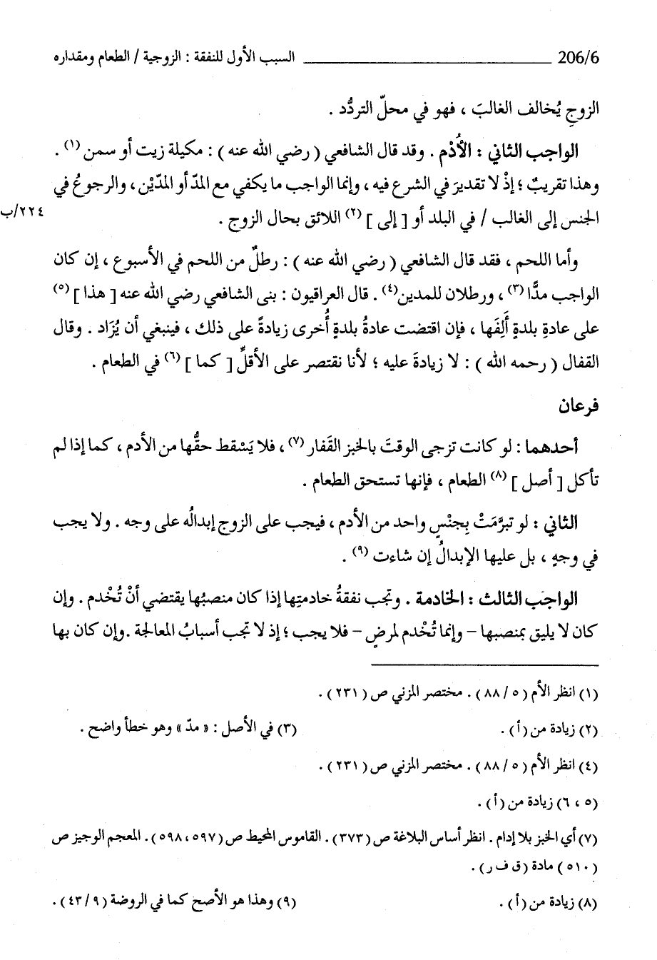 وَأما اللَّحْم فقد قَالَ الشَّافِعِي رَضِي الله عَنهُ رَطْل من اللَّحْم فِي الْأُسْبُوع إِن كَانَ الْوَاجِب مدا ورطلان للْمَدِين قَالَ الْعِرَاقِيُّونَ بنى الشَّافِعِي رَضِي الله عَنهُ هَذَا على عَادَة بَلْدَة ألفها فَإِن اقْتَضَت عَادَة بَلْدَة أُخْرَى زِيَادَة على ذَلِك فَيَنْبَغِي أَن يُزَاد وَقَالَ الْقفال رَحمَه الله لَا زِيَادَة عَلَيْهِ لأَنا نقتصر على الْأَقَل كَمَا فِي الطَّعَام