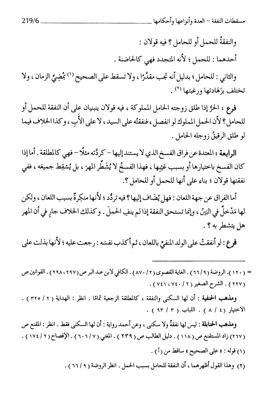 الْحر إِذا طلق زَوجته الْحَامِل الْمَمْلُوكَة فِيهِ قَولَانِ ينبنيان على أَن النَّفَقَة للْحَمْل أَو للحامل لِأَن الْحمل الْمَمْلُوك لَو انْفَصل فنفقته على السَّيِّد لَا على الْأَب وَكَذَا الْخلاف فِيمَا لَو طلق الرَّقِيق زَوجته الْحَامِل