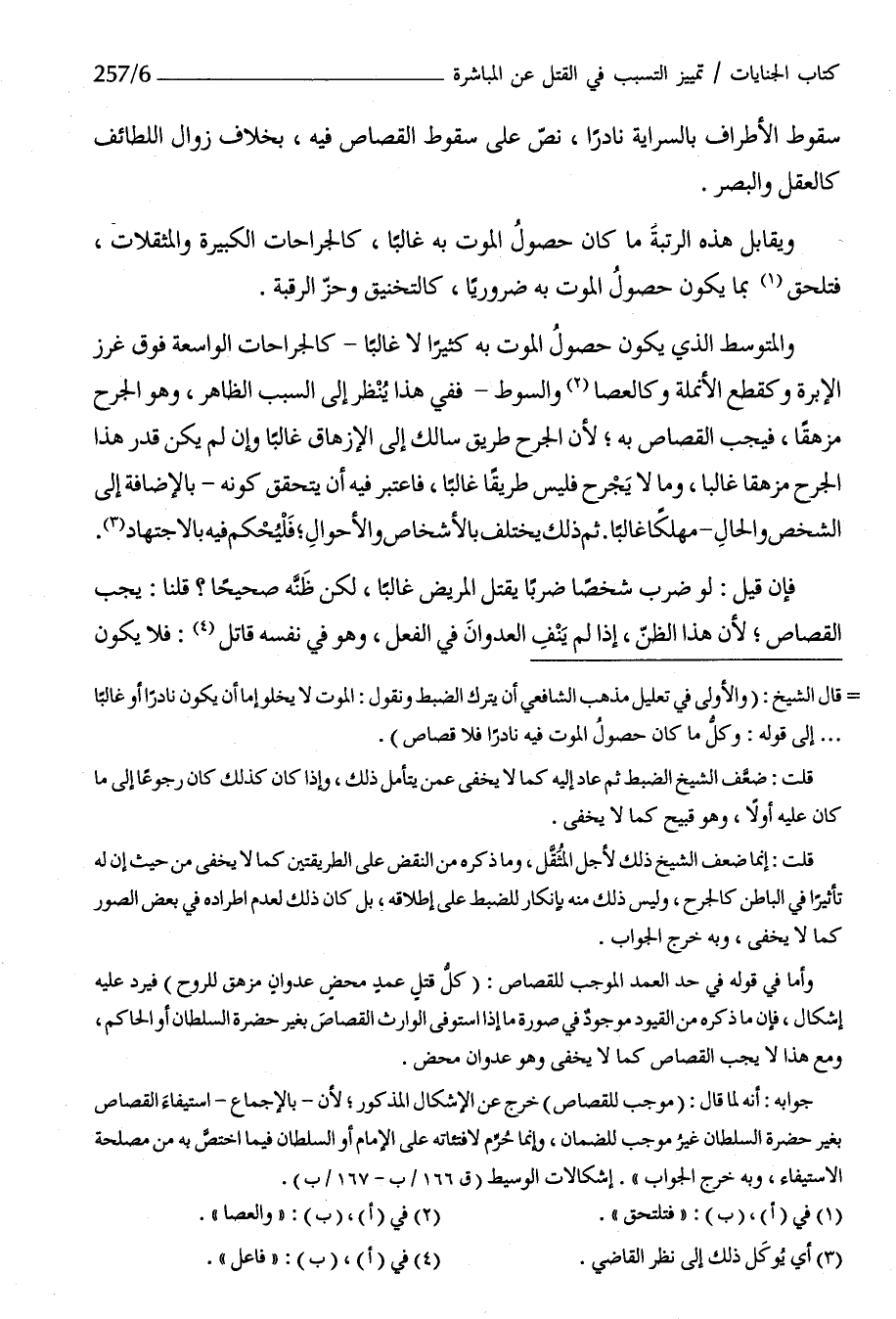 والمتوسط الَّذِي يكون حُصُول الْمَوْت بِهِ كثيرا لَا غَالِبا كالجراحات الواسعة فَوق غرز الإبرة وكقطع الْأُنْمُلَة وكالعصا وَالسَّوْط فَفِي هَذَا ينظر إِلَى السَّبَب الظَّاهِر وَهُوَ الْجرْح مزهقا فَيجب الْقصاص بِهِ لِأَن الْجرْح طَرِيق سالك إِلَى الإزهاق غَالِبا وَإِن لم يكن قدر هَذَا الْجرْح مزهقا غَالِبا وَمَا لَا يجرح فَلَيْسَ طَرِيقا غَالِبا فَاعْتبر فِيهِ أَن يتَحَقَّق كَونه بِالْإِضَافَة إِلَى الشَّخْص وَالْحَال مهْلكا غَالِبا ثمَّ ذَلِك يخْتَلف بالأشخاص وَالْأَحْوَال فليحكم فِيهِ بِالِاجْتِهَادِ