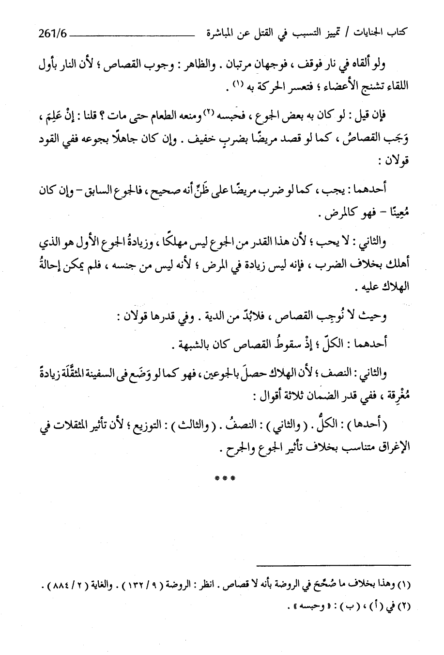 وَالثَّانِي لَا يحب لِأَن هَذَا الْقدر من الْجُوع لَيْسَ مهْلكا وَزِيَادَة الْجُوع الأول هُوَ الَّذِي أهلك بِخِلَاف الضَّرْب فَإِنَّهُ لَيْسَ زِيَادَة فِي الْمَرَض لِأَنَّهُ لَيْسَ من جنسه فَلم يُمكن إِحَالَة الْهَلَاك عَلَيْهِ