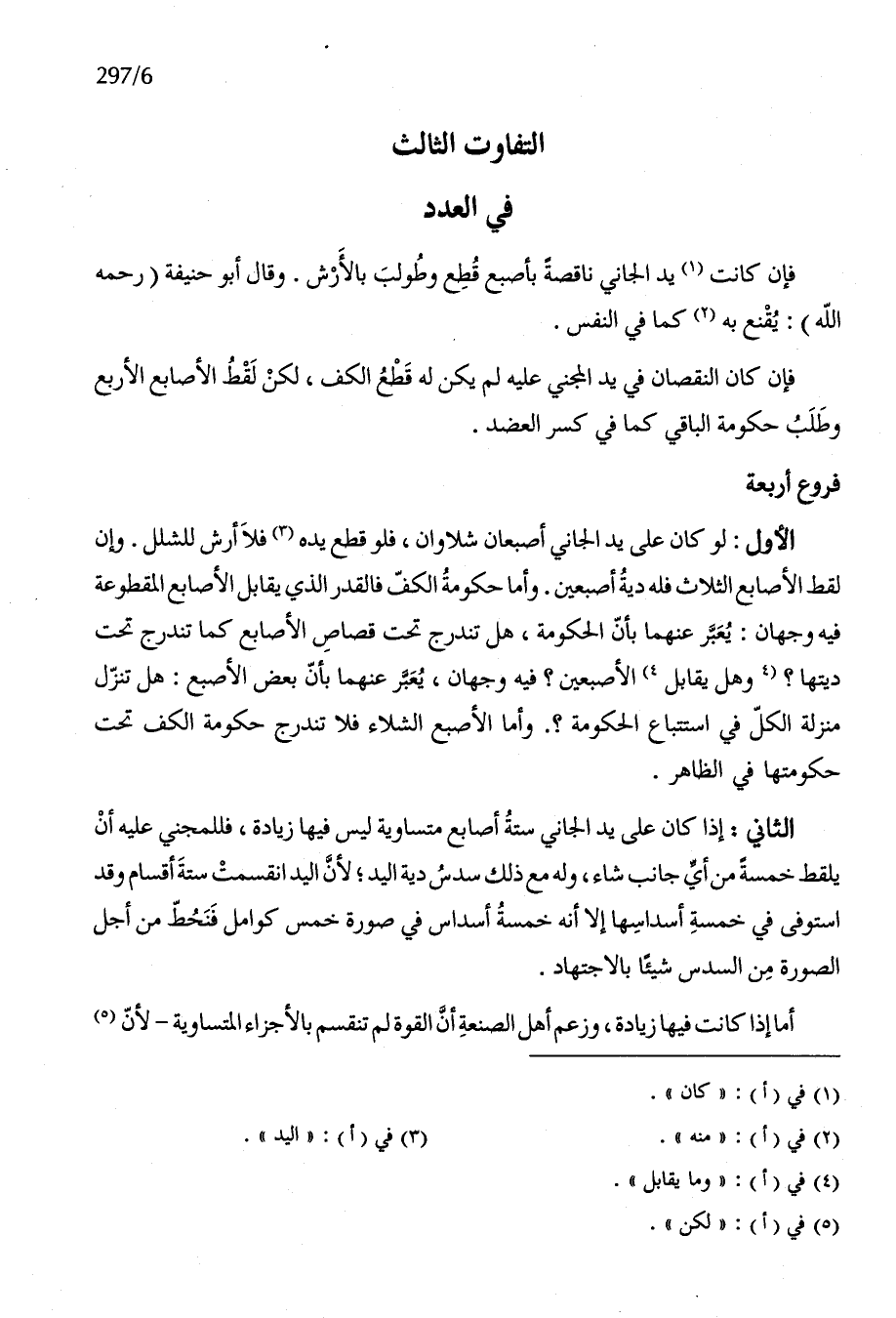 الثَّانِي إِذا كَانَ على يَد الْجَانِي سِتَّة أَصَابِع مُتَسَاوِيَة لَيْسَ فِيهَا زِيَادَة فللمجني عَلَيْهِ أَن يلقط خَمْسَة من أَي جَانب شَاءَ وَله مَعَ ذَلِك سدس دِيَة الْيَد لِأَن الْيَد انقسمت سِتَّة أَقسَام وَقد استوفى فِي خَمْسَة أسداسها إِلَّا أَنه خَمْسَة أَسْدَاس فِي صُورَة خمس كوامل فنحط من أجل الصُّورَة من السُّدس شَيْئا بالإجتهاد