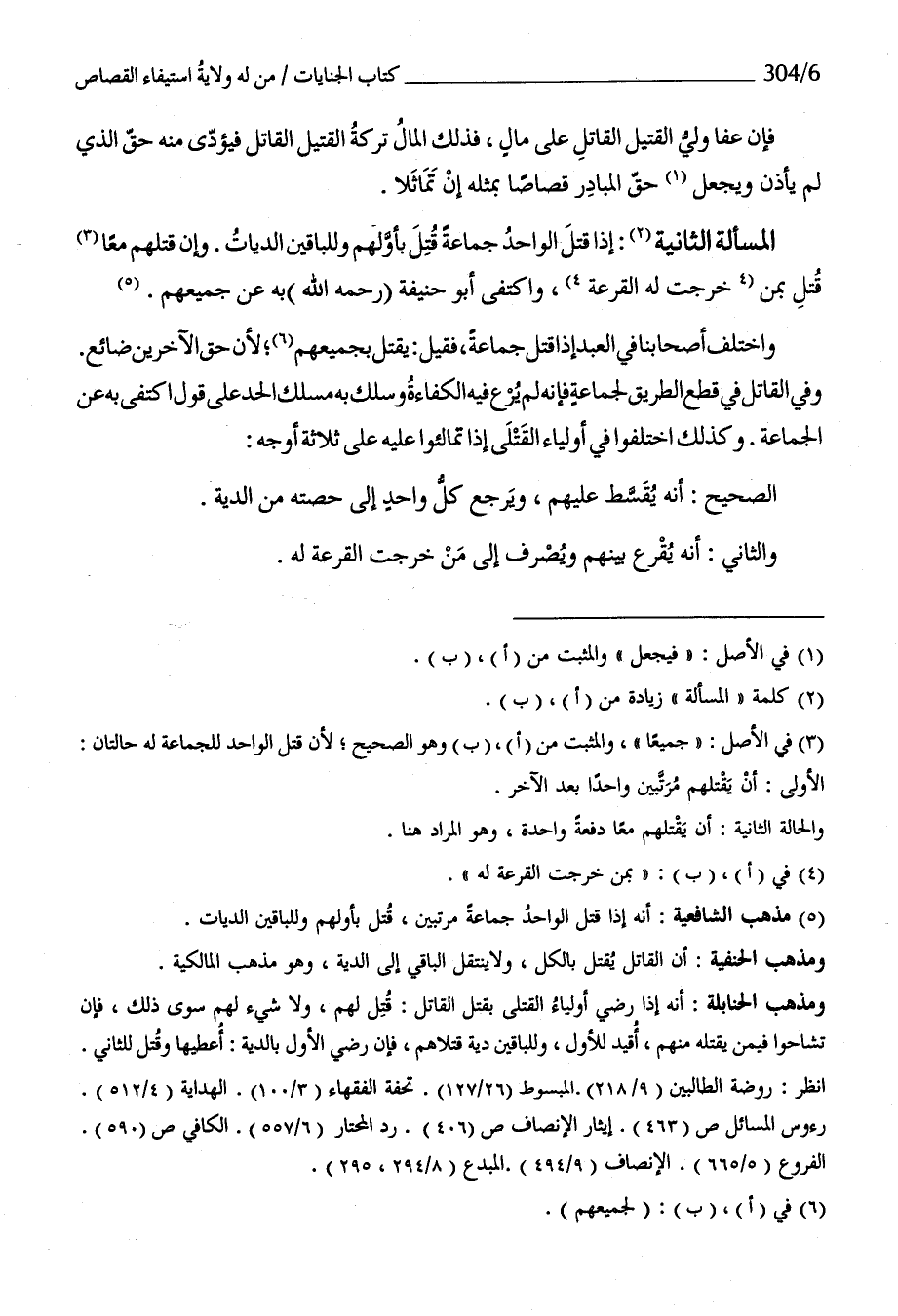 الْمَسْأَلَة الثَّانِيَة إِذا قتل الْوَاحِد جمَاعَة قتل بأولهم وللباقين الدِّيات وَإِن قَتلهمْ مَعًا قتل بِمن خرجت لَهُ الْقرعَة وَاكْتفى أَبُو حنيفَة رَحمَه الله بِهِ عَن جَمِيعهم