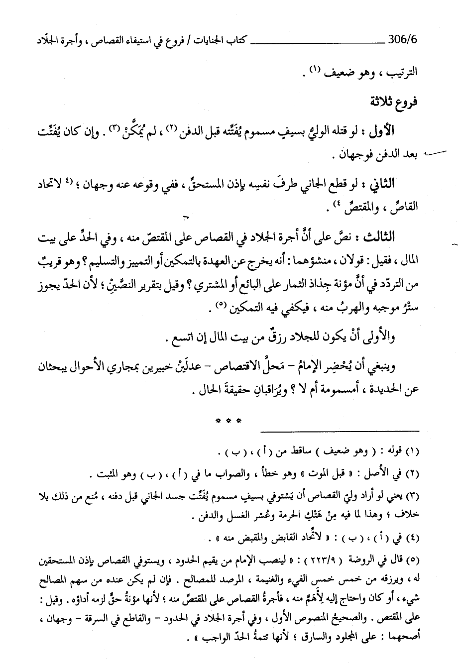 الثَّالِث نَص على أَن أُجْرَة الجلاد فِي الْقصاص على الْمُقْتَص مِنْهُ وَفِي الْحَد على بَيت المَال فَقيل قَولَانِ منشؤهما أَنه يخرج عَن الْعهْدَة بالتمكين أَو التَّمْيِيز وَالتَّسْلِيم وَهُوَ قريب من التَّرَدُّد فِي أَن مُؤنَة جذاذ الثِّمَار على البَائِع أَو المُشْتَرِي وَقيل بتقرير النصين لِأَن الْحَد يجوز ستر مُوجبه والهرب مِنْهُ فَيَكْفِي فِيهِ التَّمْكِين