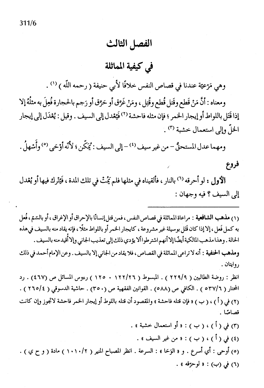 وَهِي مرعية عندنَا فِي قصاص النَّفس خلافًا لأبي حنيفَة رَحمَه الله