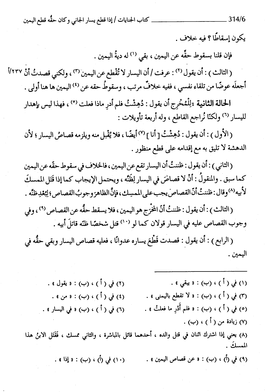 الأول أَن يَقُول دهشت أَنا أَيْضا فَلَا يقبل مِنْهُ وَيلْزمهُ قصاص الْيَسَار لِأَن الدهشة لَا تلِيق بِهِ مَعَ إقدامه على قطع مَنْظُور