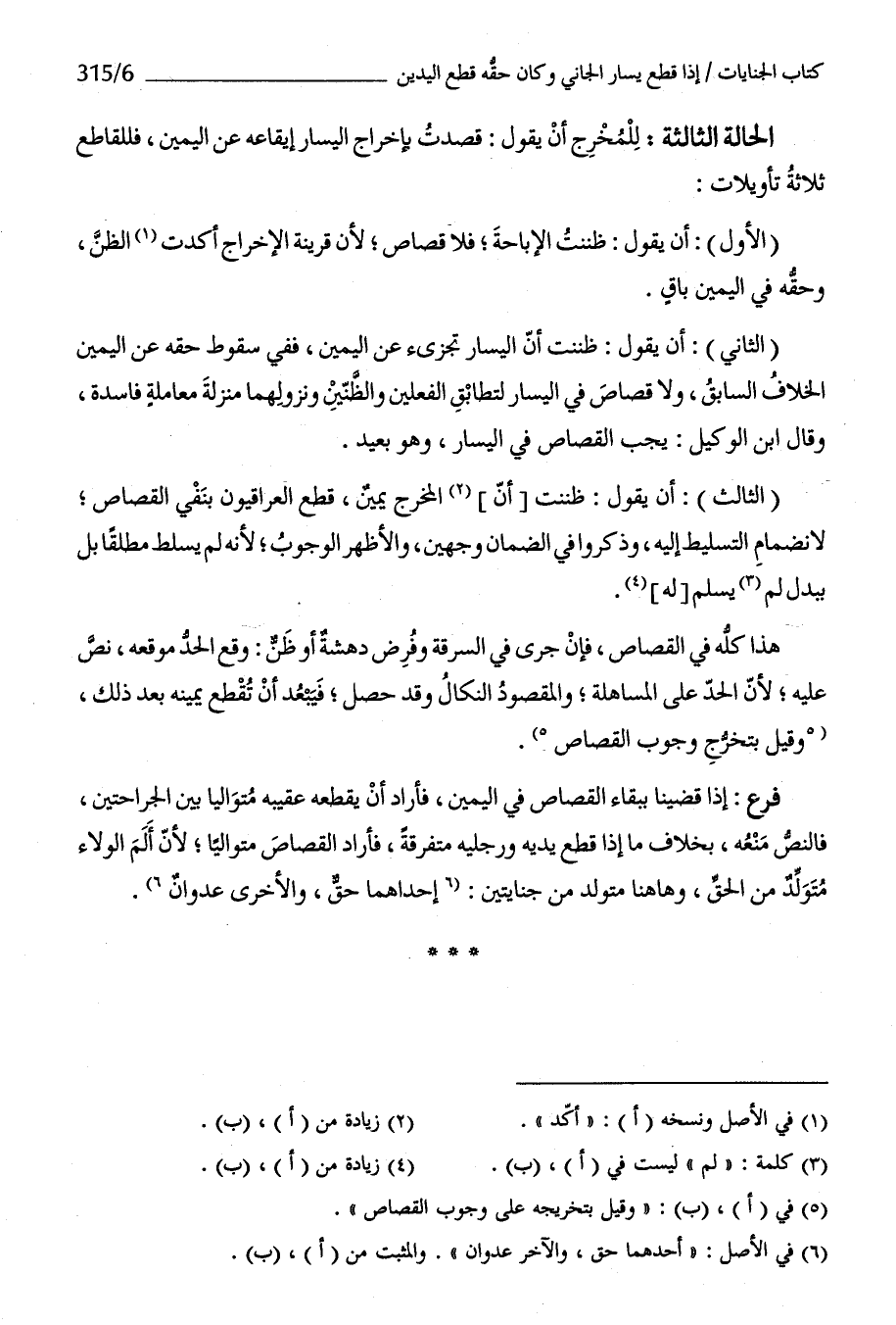 الثَّانِي أَن يَقُول ظَنَنْت أَن الْيَسَار تجزىء عَن الْيَمين فَفِي سُقُوط حَقه عَن الْيَمين الْخلاف السَّابِق وَلَا قصاص فِي الْيَسَار لتطابق الْفِعْلَيْنِ والظنين ونزولهما منزلَة مُعَاملَة فَاسِدَة وَقَالَ ابْن الْوَكِيل يجب الْقصاص فِي الْيَسَار وَهُوَ بعيد