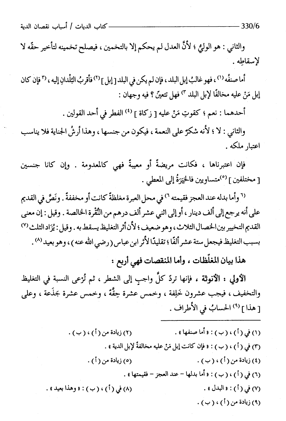 هَذَا بَيَان المغلظات وَأما المنقصات فَهِيَ أَربع
