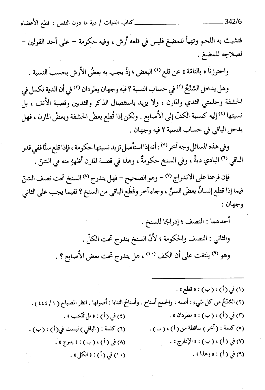وَهل يدْخل السنخ فِي حِسَاب النِّسْبَة فِيهِ وَجْهَان يطردان فِي أَن الدِّيَة تكمل فِي الْحَشَفَة وحلمتي الثدي والمارن وَلَا يزِيد باستئصال الذّكر والثديين وقصبة الْأنف بل نسبتها إِلَيْهِ كنسبة الْكَفّ إِلَى الْأَصَابِع وَلَكِن إِذا قطع بعض الْحَشَفَة وَبَعض المارن فَهَل يدْخل الْبَاقِي فِي حِسَاب النِّسْبَة فِيهِ وَجْهَان