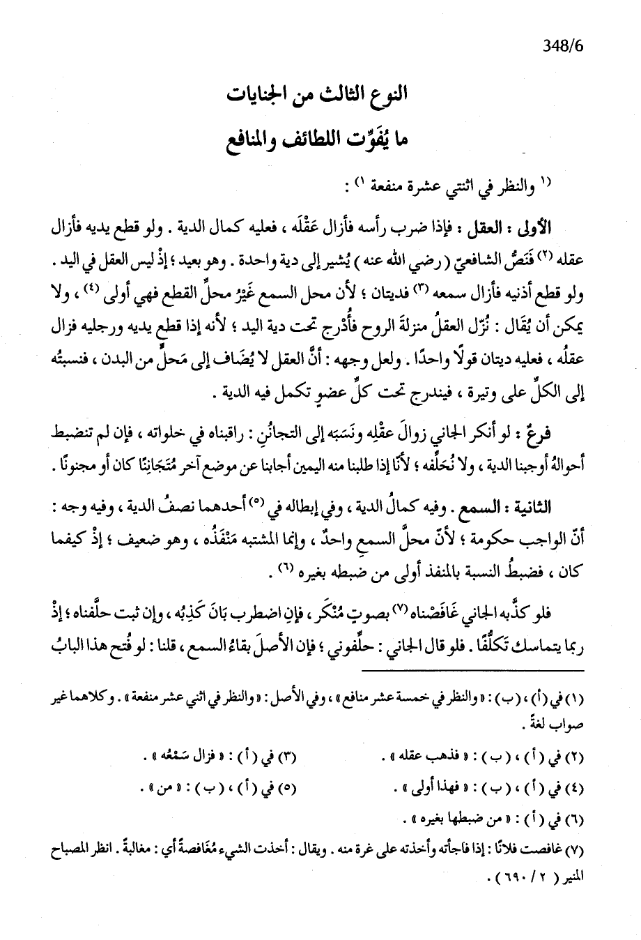 النَّوْع الثَّالِث من الْجِنَايَات مَا يفوت اللطائف وَالْمَنَافِع