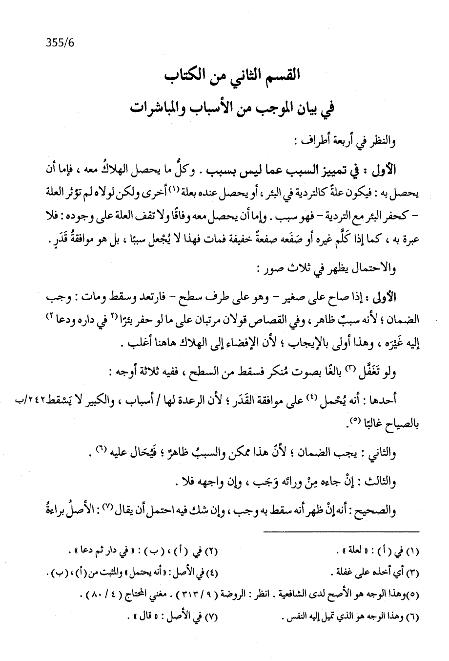 الْقسم الثَّانِي من الْكتاب فِي بَيَان الْمُوجب من الْأَسْبَاب والمباشرات