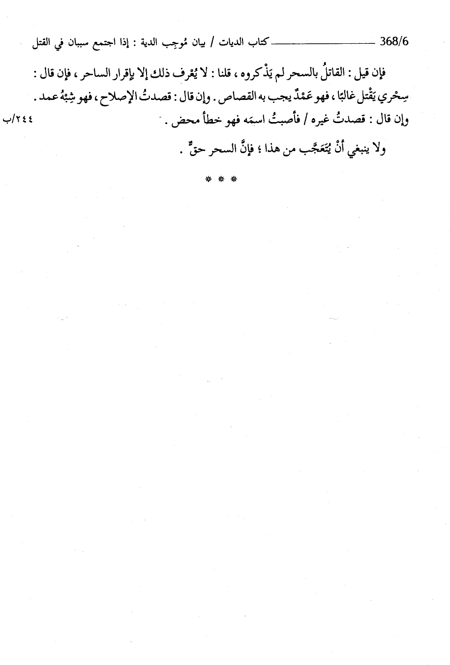 فَإِن قيل الْقَاتِل بِالسحرِ لم يذكروه قُلْنَا لَا يعرف ذَلِك إِلَّا بِإِقْرَار السَّاحر فَإِن قَالَ سحرِي يقتل غَالِبا فَهُوَ عمد يجب بِهِ الْقصاص وَإِن قَالَ قصدت الْإِصْلَاح فَهُوَ شبه عمد وَإِن قَالَ قصدت غَيره فَأَصَبْت اسْمه فَهُوَ خطأ مَحْض